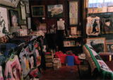 その奥には動物の編みぐるみを囲んで、ロバート・アルトマン、ハリー・ニルソン、レナード・コーエン、たけうちこうた、ミレーユ・ダルク、シャーロット・ランプリング、「トリコロール赤の愛」 フェイ・ダナウェイ、そして大きなアンソニー・クインのポンチョ
