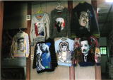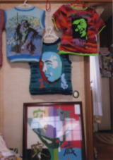 まず玄関に入ると「抱月天眼」のタペストリーに、「樹陰消失」と「被爆の翼」の平和作品 そこへ高倉健、緒形拳、菅原文太、渥美清に新作のHOKUSAI、漱石、そして「白仏」のセーター