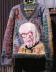 白泉は京大生の頃「戦争が廊下に立ってゐた」を詠んで、特高警察に引っ張られた 戦後は俳壇を離れ、沼津の高校教員として過ごした 今、心ある人びとは「新しい戦前」を憂えている このチョッキを制作するに際し、資料が少なく、肖像は新聞記事を元にした だからこの人の全容はよく知らない 高松市図書館は朝日文庫の現代俳句の世界シリーズ16の「富沢赤黄男 高屋窓秋 渡辺白泉集」すらないのである 何たる貧しき市よ |